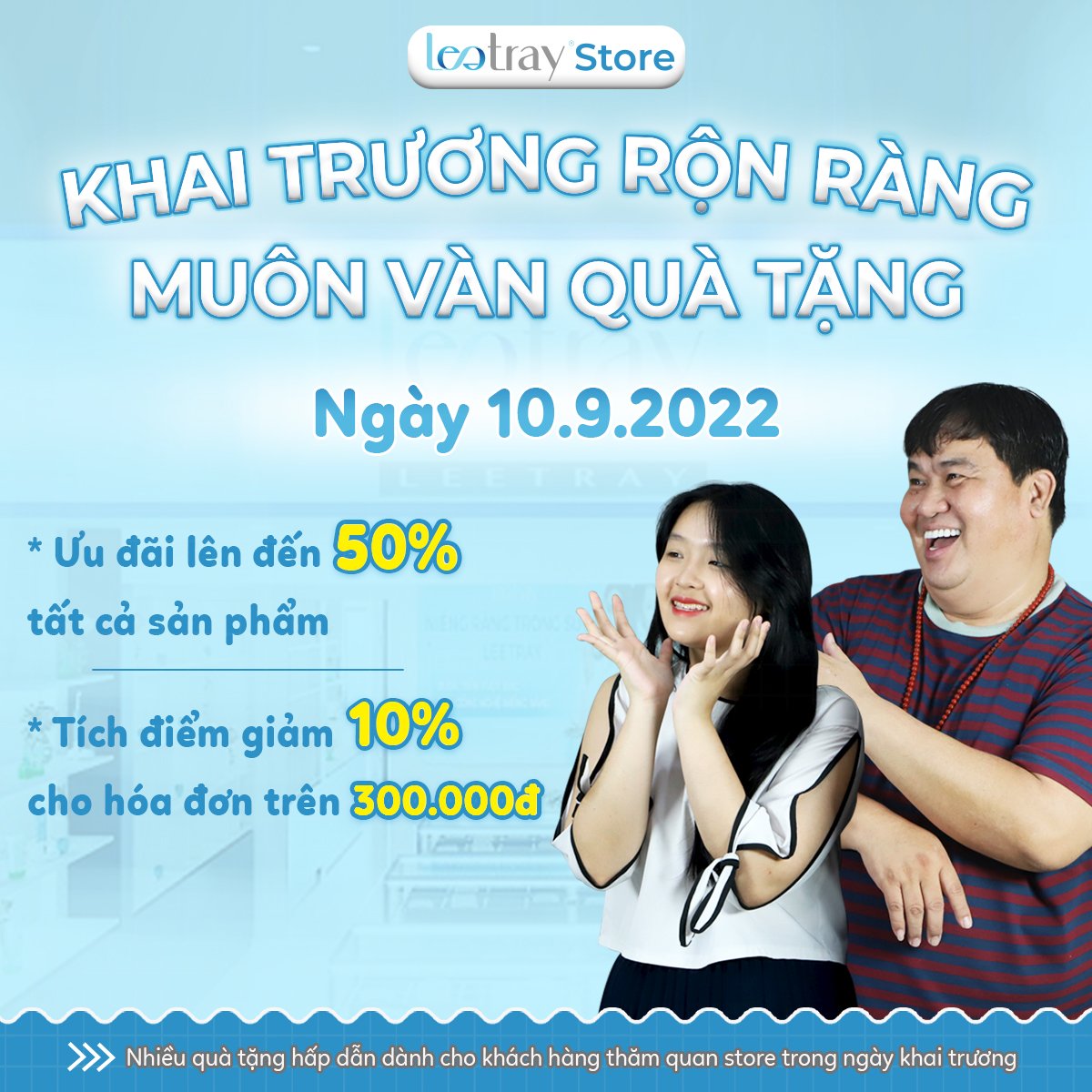 Nhân dịp mừng khai trương, Leetray Store ưu đãi lên đến 50% cho tất cả sản phẩm tại của hàng. Với hóa đơn từ 300.000đ sẽ được tích điểm giảm 10% và còn rất nhiều quà tặng hấp dẫn khác.